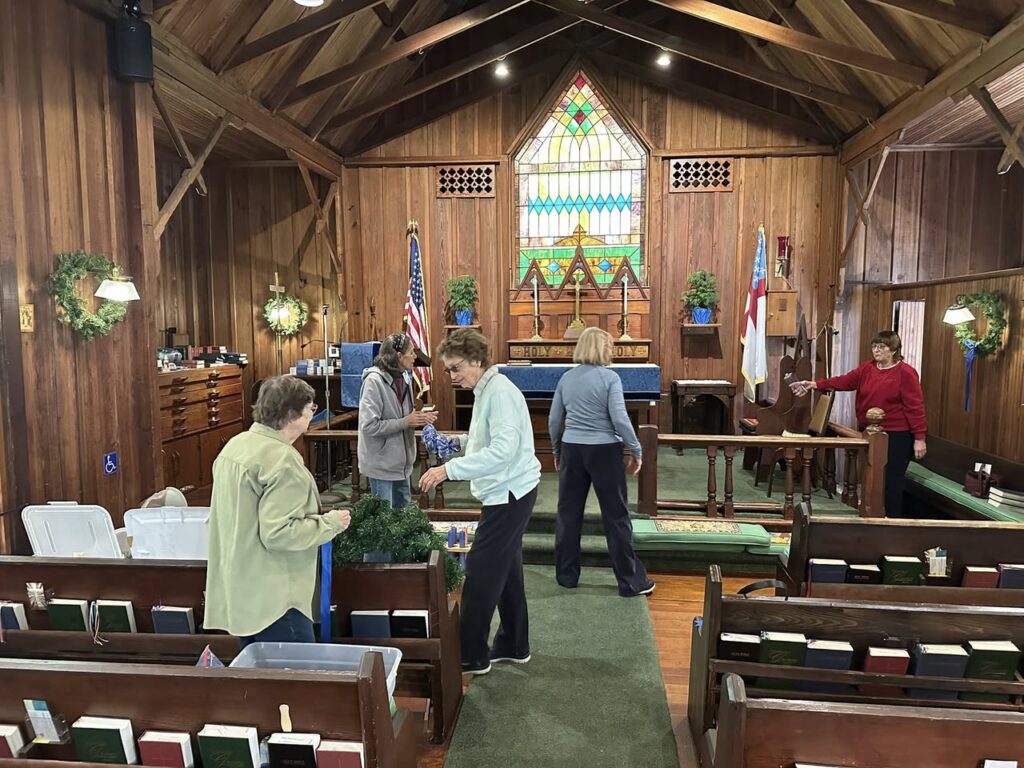 Saturday, November 29 – Members of the Altar Guild (with feline assistance) gathered for the “Greening” of the Church.